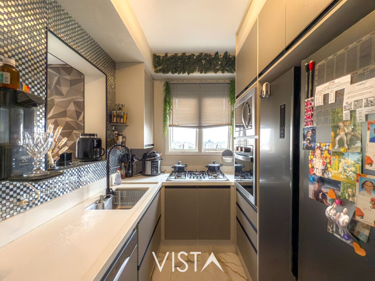 Cozinha moderna, área de serviço separada e lavabo para conveniência