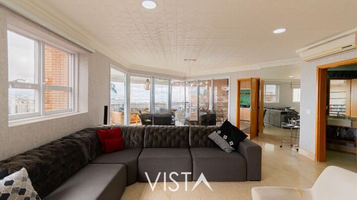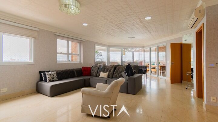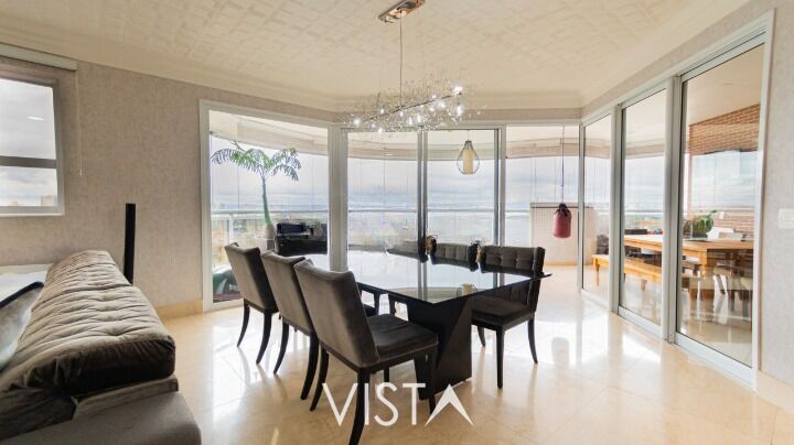 Amplo living com 2 ambientes (podendo ser revertida para mais um dormitório), lavabo copa, cozinha com ilha revestida em ?Pedra Silverstone?, Varanda Gourmet completa: sacada envidraçada e cortina rolô motorizada, área de serviço planejada, 5 banheiros e 04 vagas de garagem cobertas.