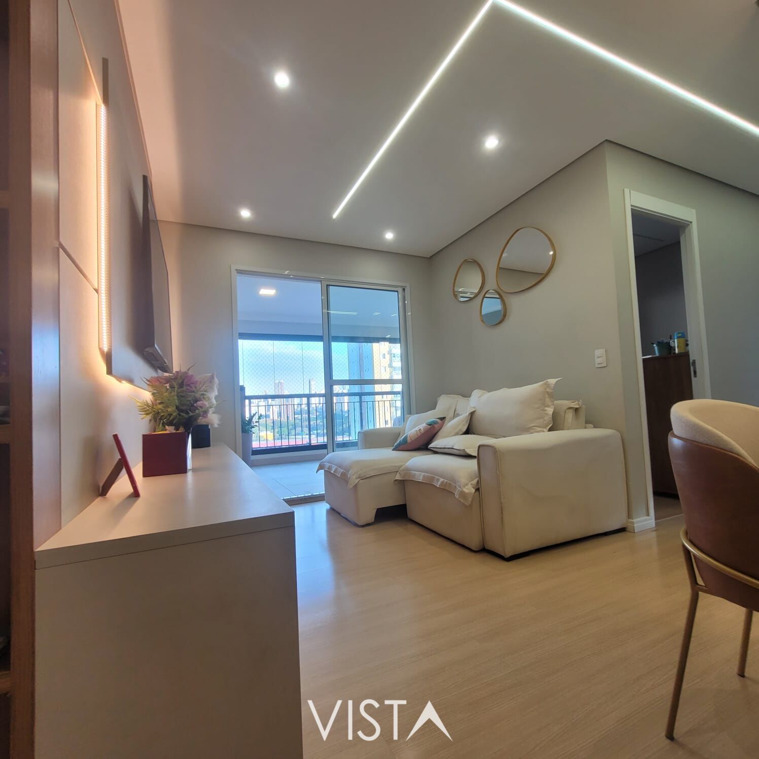 O apartamento encontra-se totalmente mobiliado, com móveis planejados sob medida em todos os ambientes, proporcionando excelente aproveitamento de espaço e um design moderno e funcional. A sala é integrada à varanda, garantindo ótima iluminação natural e ventilação. A cozinha é equipada com armários e bancada de apoio, oferecendo praticidade no dia a dia. Os dormitórios contam com armários embutidos e excelente distribuição, destacando-se a suíte principal pelo conforto e privacidade.