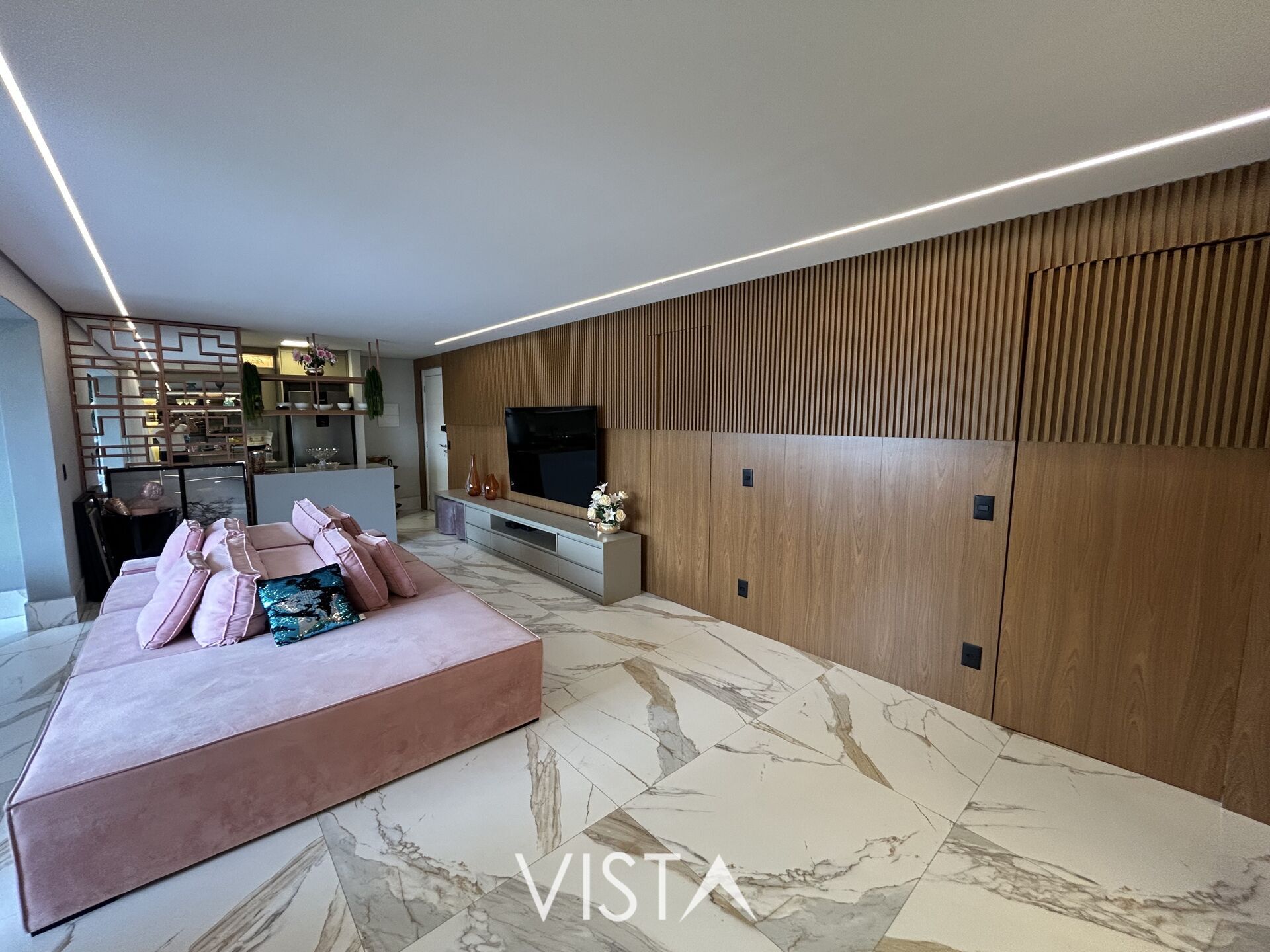 Com acabamentos de alto padrão, o apartamento apresenta uma decoração moderna, planejados em todos os cômodos e ótima iluminação natural. A sala é ampla e integrada à varanda, proporcionando um espaço perfeito para receber familiares e amigos.