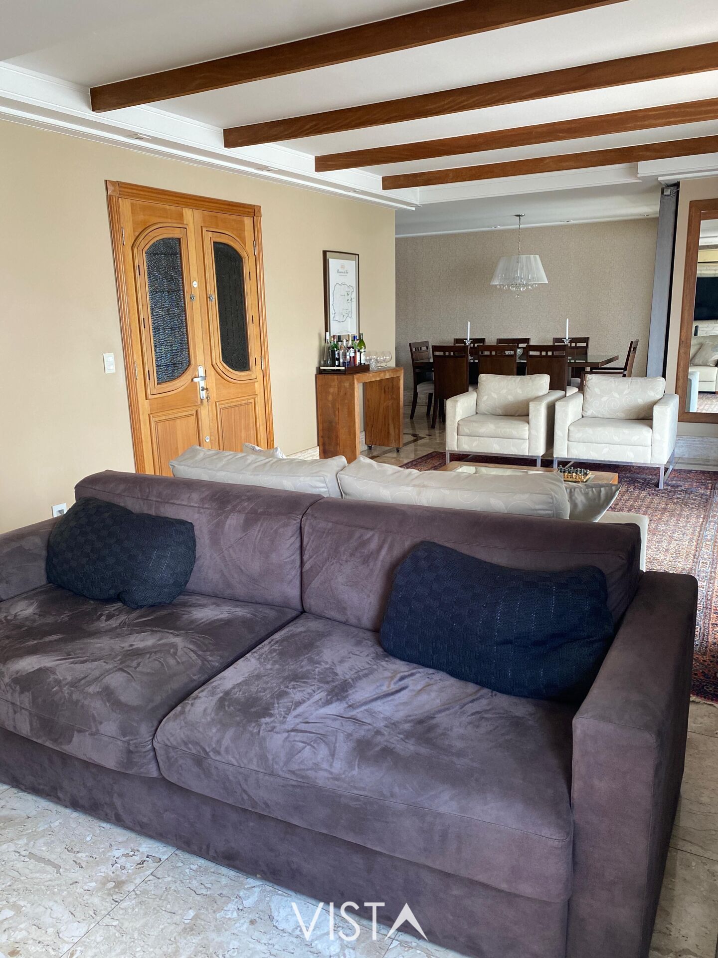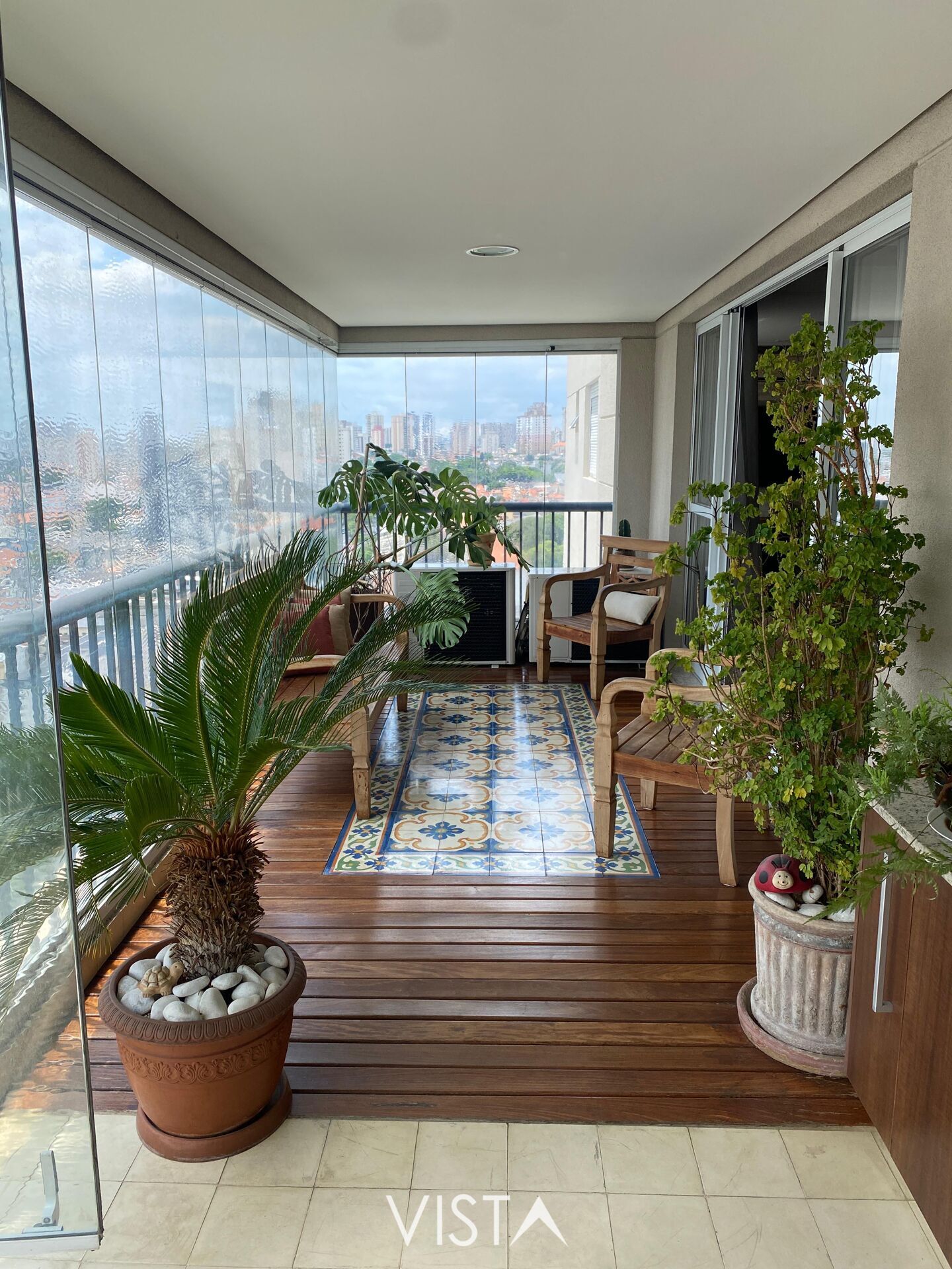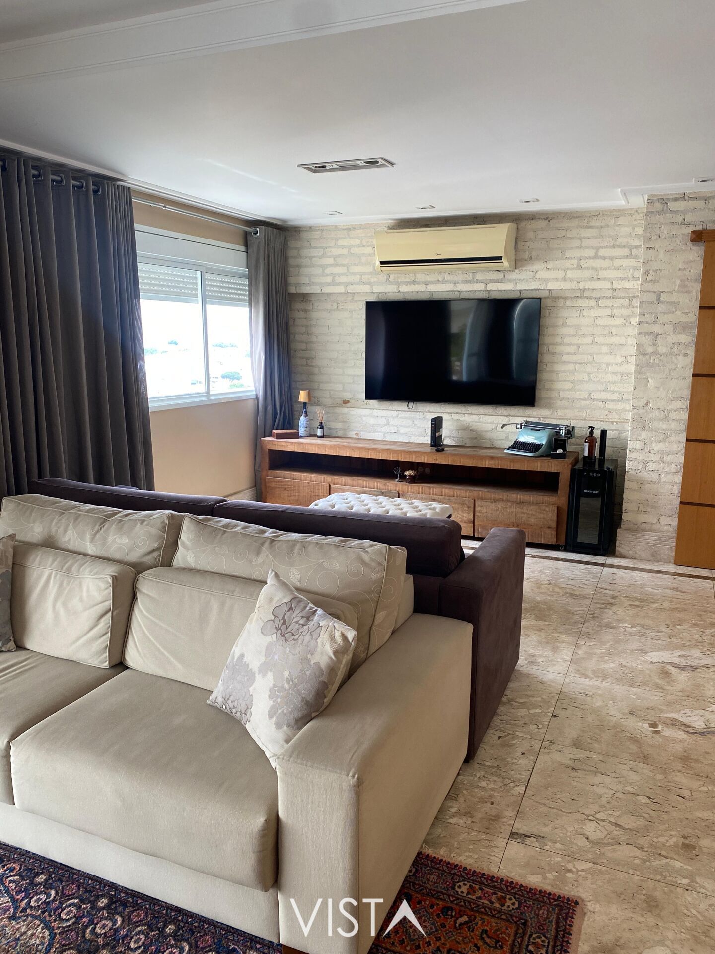 A área social é um grande destaque, com living espaçoso para vários ambientes, perfeito para integrar sala de estar, sala de jantar e home theater, além de excelente iluminação natural proporcionada pelas amplas janelas. A varanda complementa o ambiente, trazendo ainda mais charme e ventilação ao espaço.