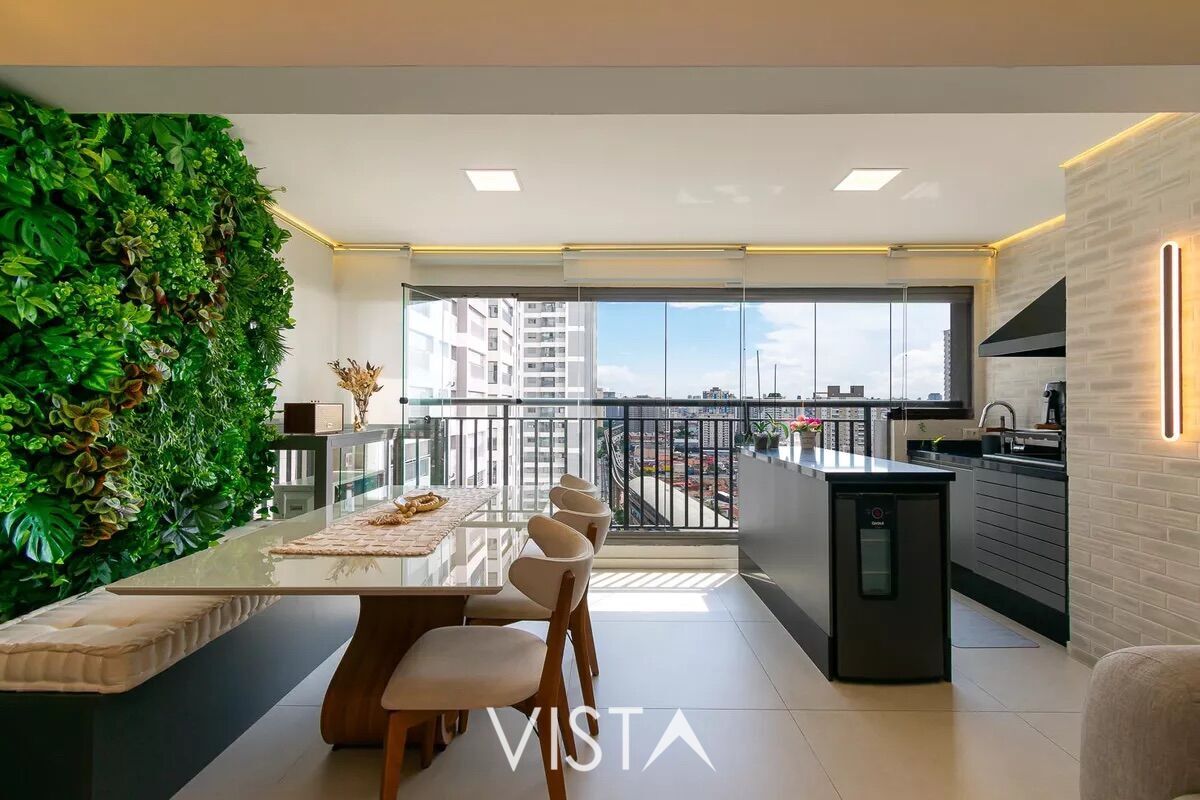 Planejados em todo apartamento com madeira industrial, incluindo painel de alto custo com ripado na sala; Planejados do quarto com 2 portas reflecta bronze; Pedras Quartzo nos banheiros, cozinha, varanda (incluindo as 2 ilhas) e área de serviço; Box de vidro nos banheiros; Espelho bronze na sala e no quarto; Cabeceira cama de casal de linho sob medida; Porcelanato em todos os cômodos, inclusive revestimento dos banheiros; Jardim vertical e persianas na varanda; Sala ampliada e integrada; Ar condicionado na suíte e na sala; Vista livre para área de lazer e pôr do sol; Metrô de acesso a linha verde na mesma calçada do condomínio.