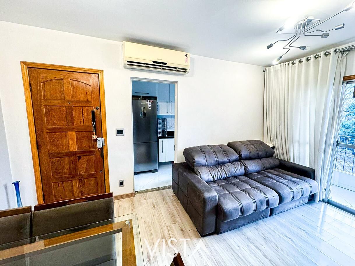 Apartamento de 65 metros quadrados com 3 dormitórios, cozinha, sala, 1 banheiro, sacada e 1 vaga de garagem.