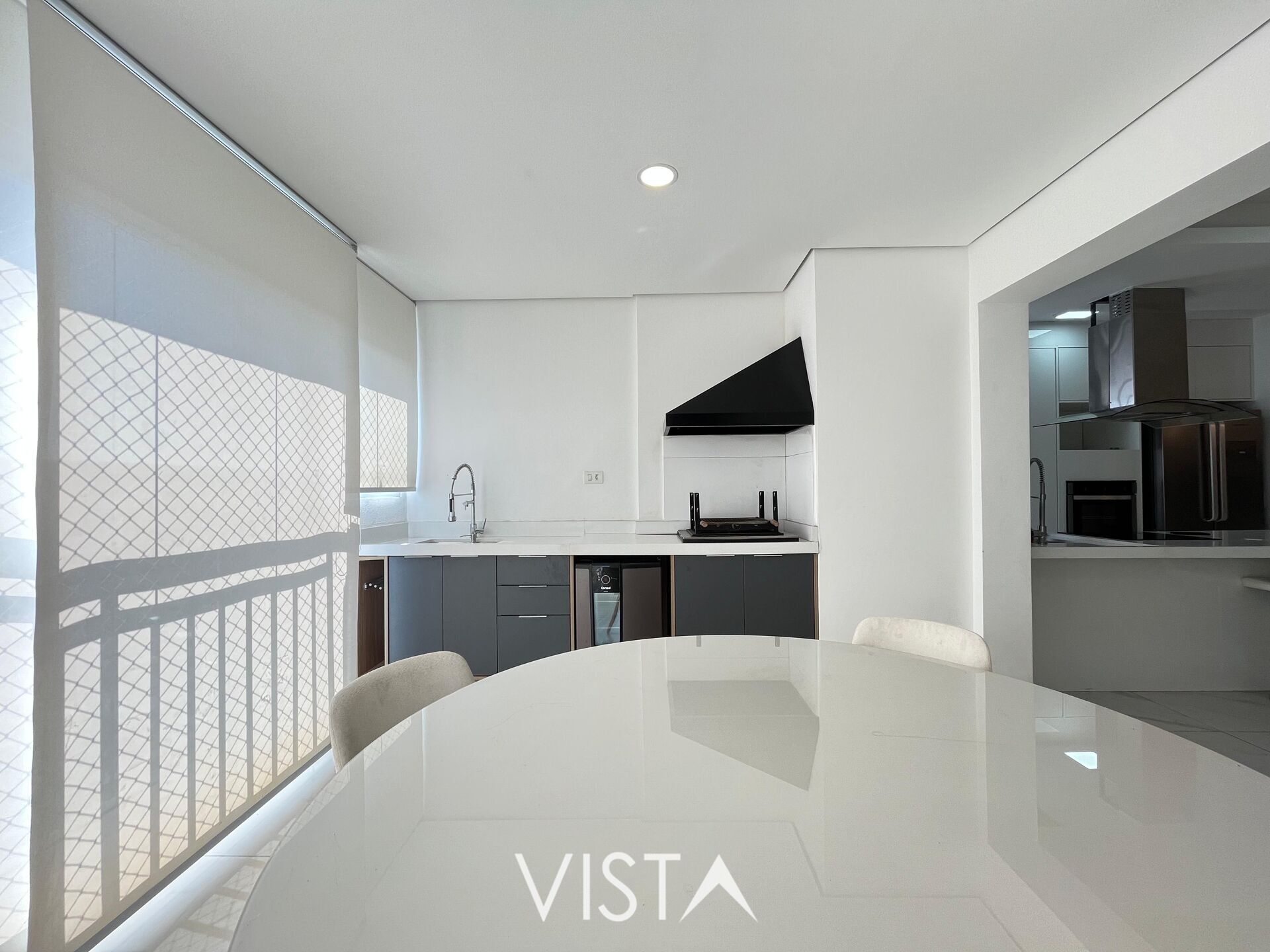 A ampla varanda gourmet, com vista totalmente livre, é ideal para receber amigos e proporcionar momentos de lazer. A unidade possui 2 vagas de garagem e está completamente mobiliada, pronta para morar, com ambientes planejados e acabamentos de qualidade.