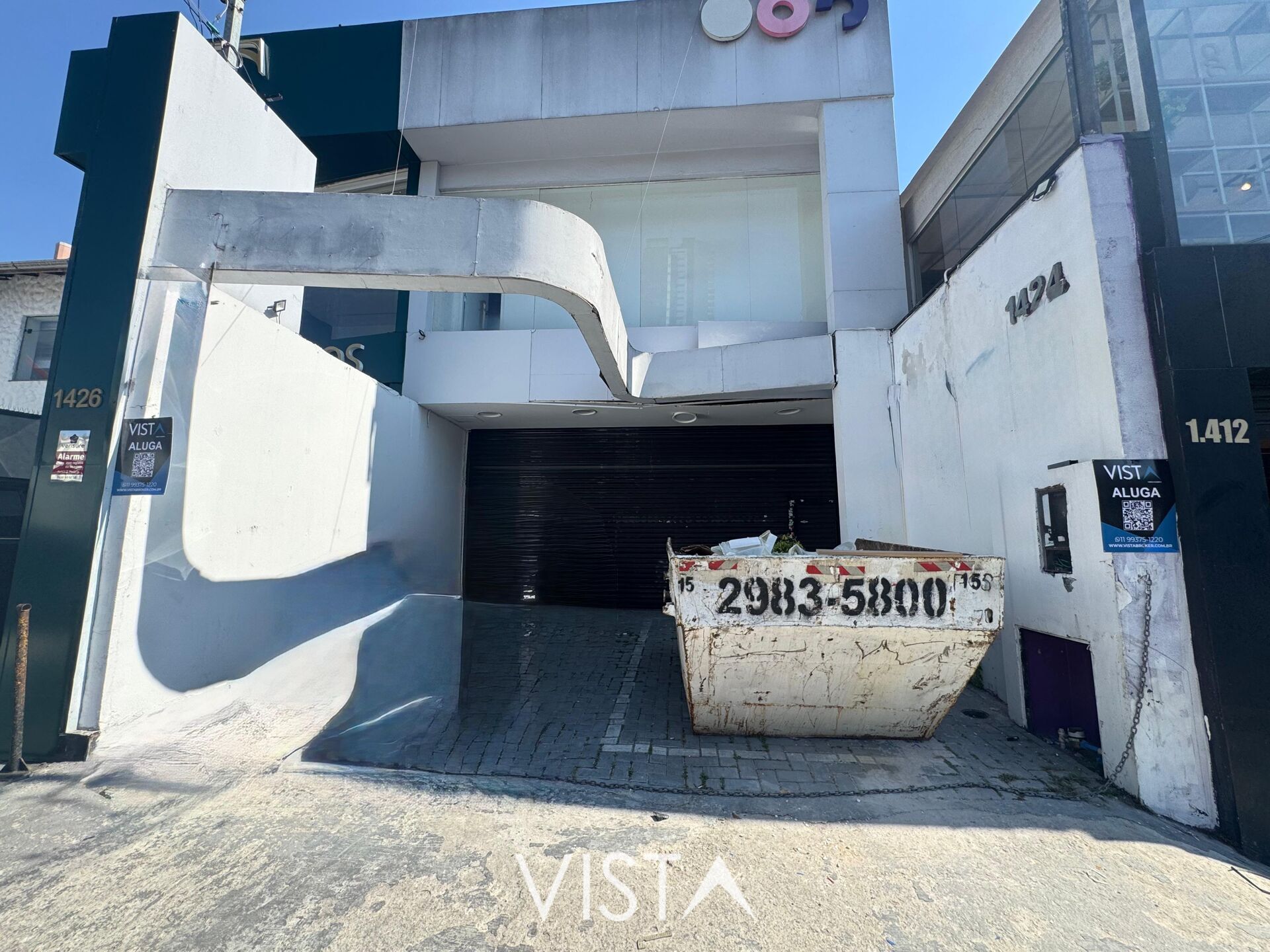 - Em outra opção disponível na mesma rua: 200 m², com layout em dois pisos, 2 vagas, instalações completas (ar-condicionado, porta automática etc.), disponível por R$ 12.000/mês.